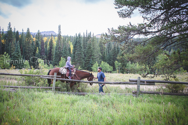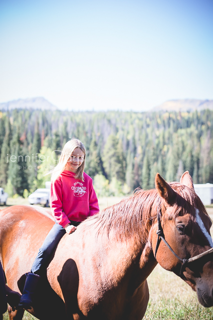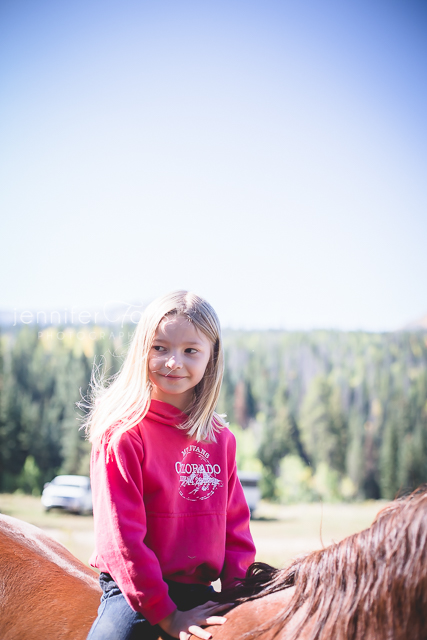 When we checked back in, she was still with the horses and had badgered Uncle Sam long enough (or just gave the puppy dog look with those big brown eyes) until he finally put her up on Johnny