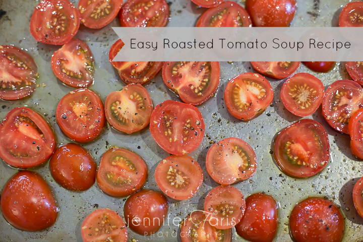 Preheat Oven to 425°. Use some of the oil to coat a cookie sheet. Slice the tomatoes (not too thin) and lay them on the sheet. Coat/brush them with oil. Add salt and pepper and roast for 30-40 minutes. Just keep your eye on them so they don’t burn.