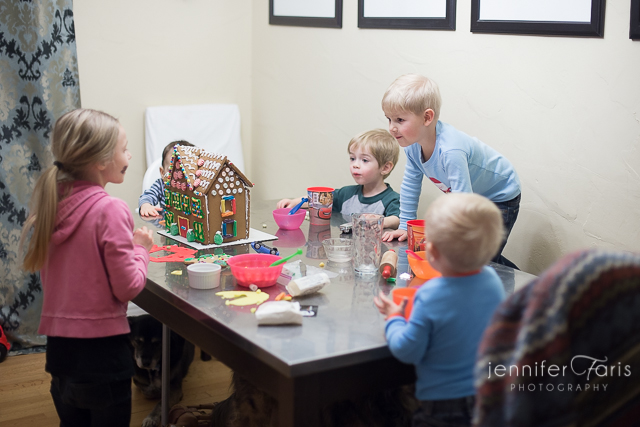 Once upon a time I was all about crafting at Christmas. Making decorations, homemade wreaths, delicious treats for gifts…but these days I have a bit of a time management issue (read: 3 busy kids) so my crafting has gone to the wayside. We did however finally get to decorate the Gingerbread house and cousins Danny and Tommy happened to be here for the festivities.