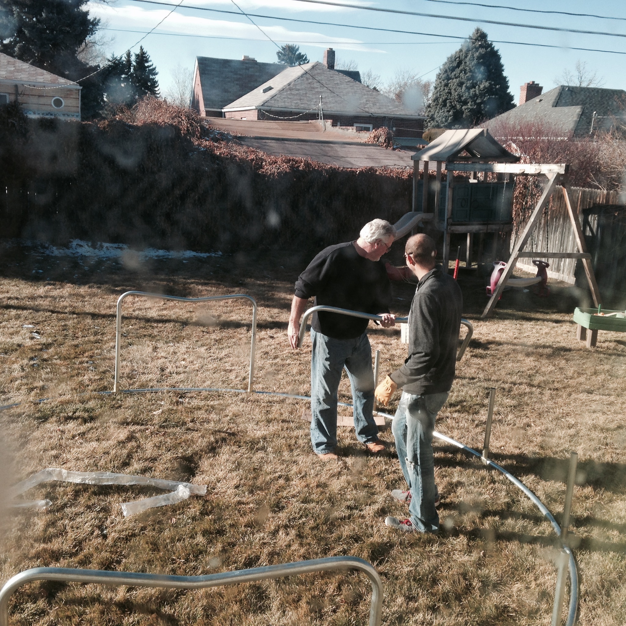 2 days before Christmas Uncle Randy brought the trampoline over and helped Jared set it up in the backyard. We closed all of the blinds hoping that our children wouldn’t notice as they began construction.