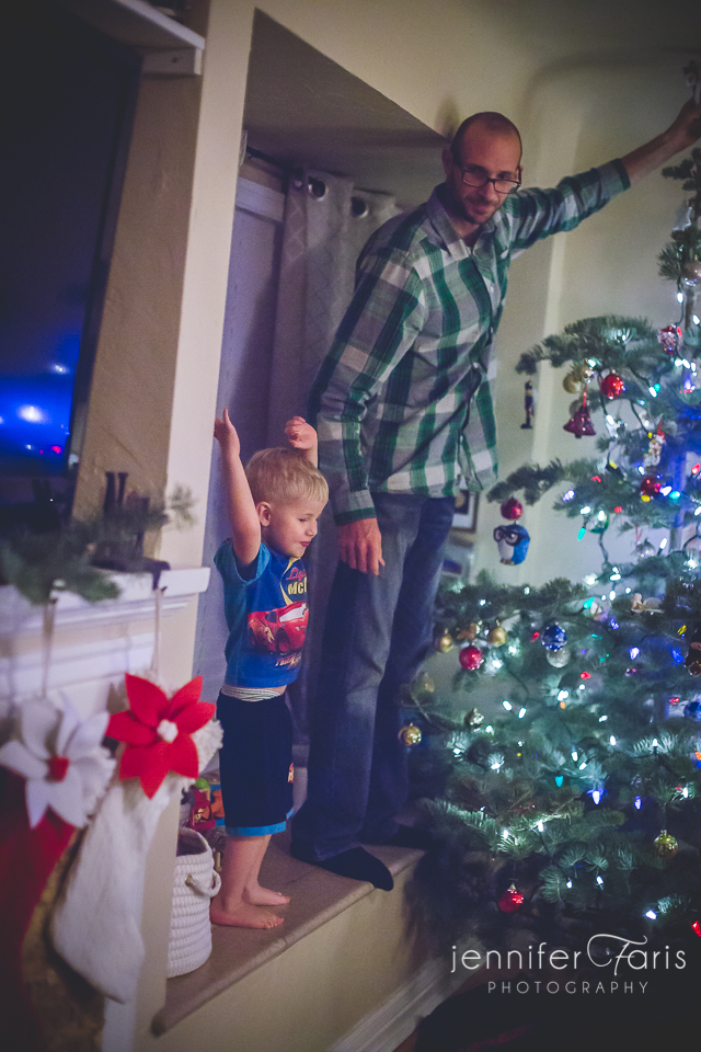 Then he stood by Daddy’s side as he put St Nick on top of the tree