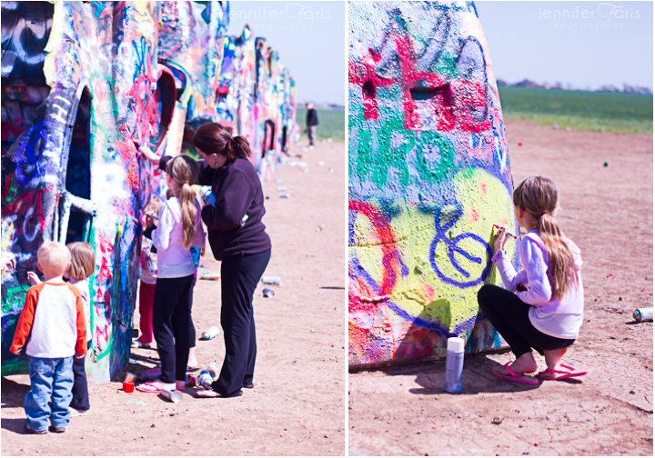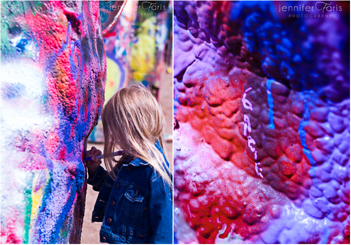 There was 11 of us caravanning in a minivan and our Pilot. Cozy, but we made it work. We tried to limit our stops but couldn’t resist the Cadillac Ranch in Amarillo on Day 2. Despite the extreme and persistent protests from the ‘men’ we overruled them (shocking I know) and got a few great photos out of it.