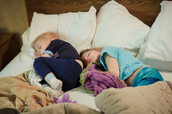 Blah blah blah. With the encouragement of family, we finally kissed those excuses goodbye and hit the road. We took our time on the way out, deciding to head out a day early to avoid a snowstorm (good call Dad) and made it to Raton for our first night in the hotel. We woke up to see these two all curled up.