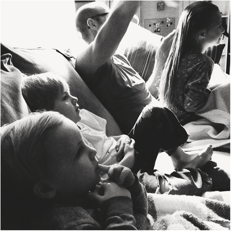 Soon it was time for bed. We all sat on the couch and watched a bit of ‘Croods” while Daddy brushed out Grace’s hair after the bath.